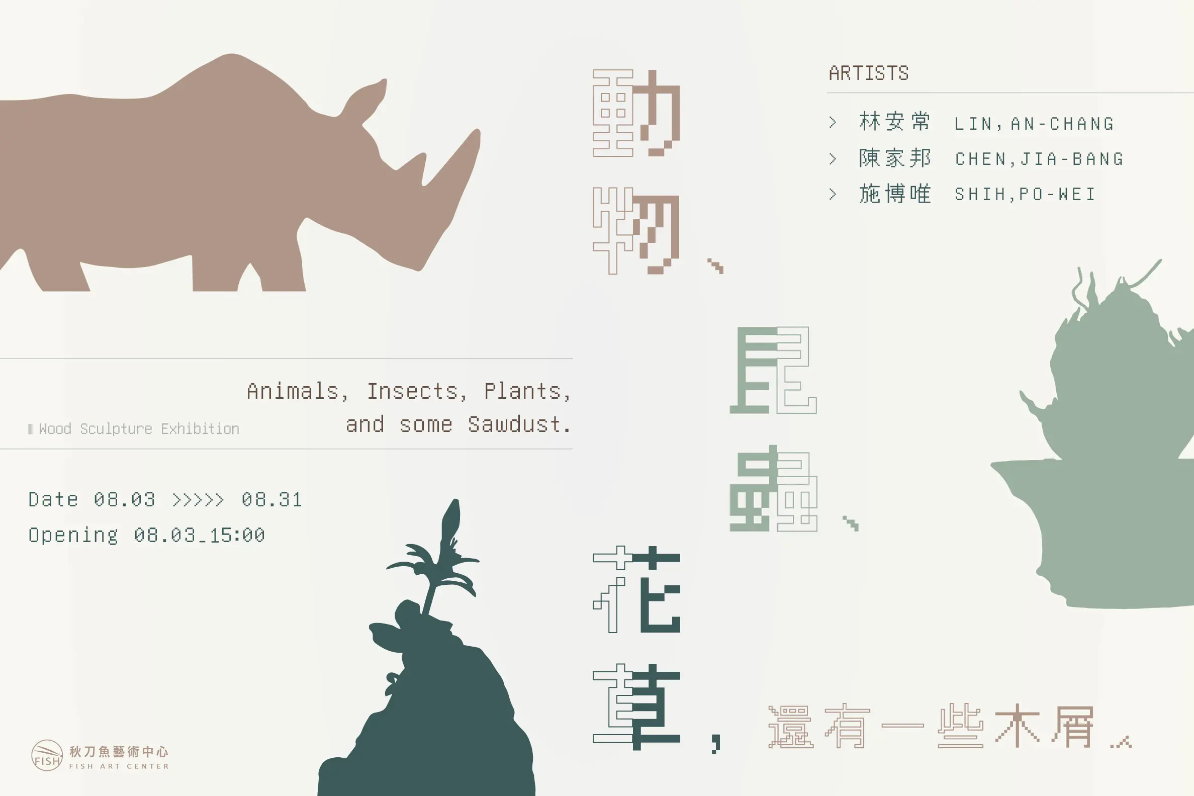秋刀魚藝術中心這次的展覽由三位創作者:林安常 LIN AN-CHANG / 陳家邦 CHEN JIA-BANG / 施博唯 SHIH PO-WEI共同參與,三者皆以⽊雕作為主要的創作形式,以⽊材質抒發並闡述⾃⾝對⽣活的反芻及感受,並透過對於⽊材質的理解與想像做視覺表現。