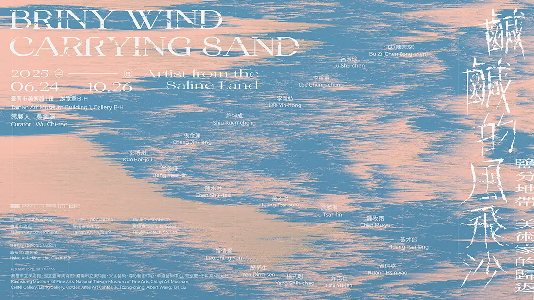 「鹹鹹的風飛沙.鹽分地帶美術家的歸返」展覽邀請十八位來自鹽分地帶的藝術家,包括卜茲(陳宗琛)、呂淑珍、李重重、李義弘、涂璨琳、翁美娥、張金蓮、許坤成、許雨仁、郭博州、陳水財、陳牧雨、黃才松、黃才郎、黃信堯、楊式昭、顏頂生、羅清雲等。橫跨不同世代與風格,作品涵蓋水墨、油畫、版畫、攝影與複合媒材等形式。藝術家們透過各自的視覺語言,回望土地與歷史,連結地域與個人、鄉愁與現代。