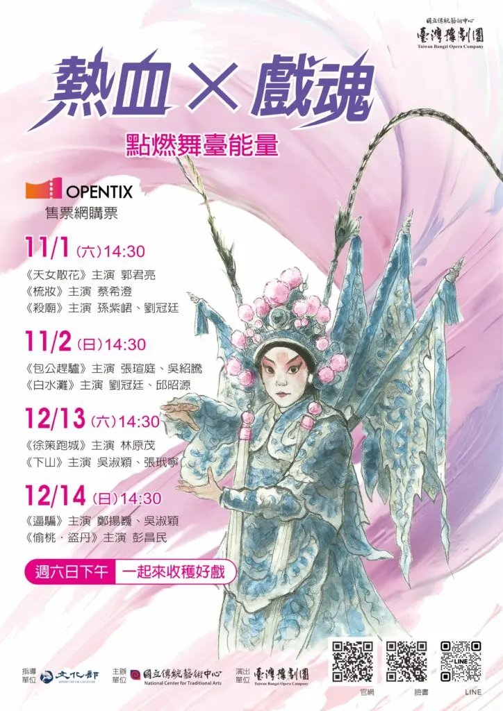國立傳統藝術中心臺灣豫劇團114年11月至12月推出四場「飆戲」演出,於11月1日、2日,12月13日、14日在左營豫劇團團內,火熱上演。當傳統戲曲遇上新世代的熱血青年,會激盪出什麼火花?臺灣豫劇團「2025飆戲:熱血╳戲魂 點燃舞臺能量」四場演出,打破傳統師徒制框架,讓中生代與青年演員透過實戰演出傳承技藝,連平時負責戲服管理的幕後工作人員也將展現深藏不露的功底,同臺競技。