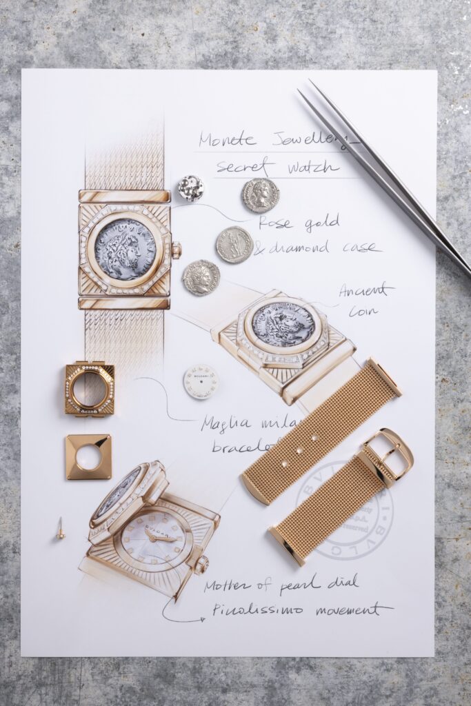 寶格麗腕錶產品設計執行總監 Fabrizio Buonamassa Stigliani表示:「此件作品的精隨在於其柔韌特性,而這個靈感激發了一個歷經時光淬鍊的非凡計畫。這次的創作可謂一場啟示,讓我們得以探索寶格麗在製錶與珠寶領域中的更多可能性。而作品的多元性則透過多重符碼呈現:古幣、幾何八角形,以及細膩流暢的米蘭錶帶。」