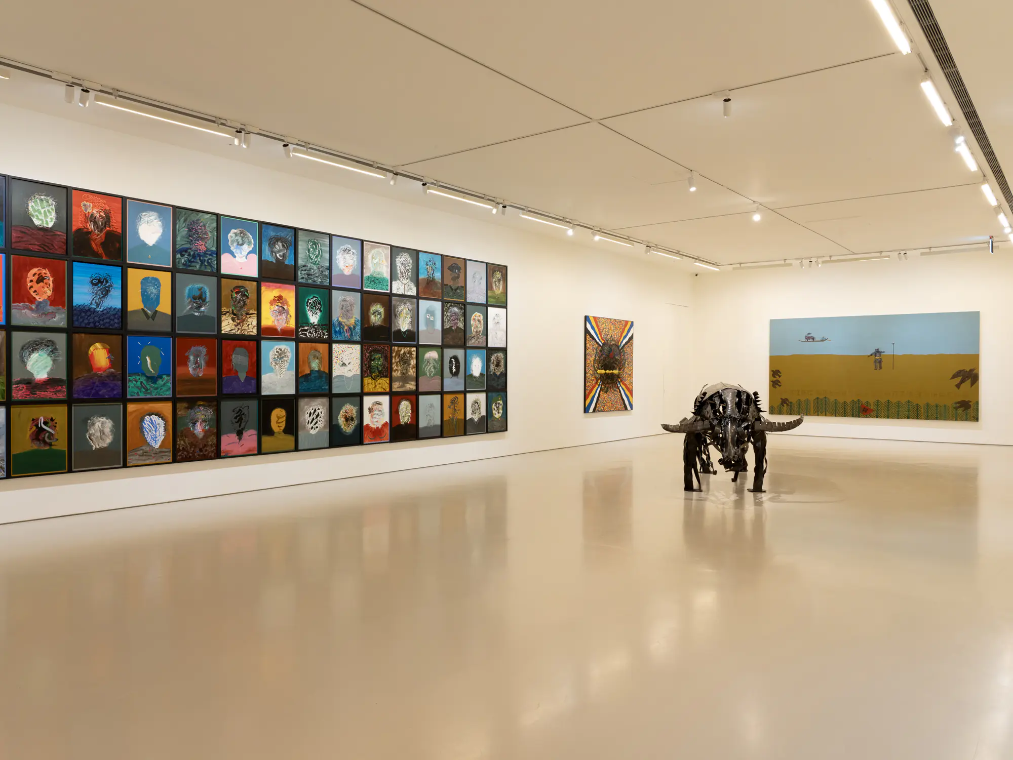 本次展覽以「神門百顏」為題,構築出神聖與人間對話的意象。威儀顯赫的兩幅《門神》以趨近寺廟大門的宏偉尺幅,成為夏陽的核心代表作,作品可見夏陽獨特的「毛毛人」筆觸,輪廓若隱若現,卻依然傳達出強烈的守護氣勢,並與久違多年、再度於台北完整亮相的代表作《百顏聯作》遙相呼應。由一百幅畫布組成、匯聚百張肖像的《百顏聯作》,現場逾10米展開形成壯闊的毛毛人像風景,對於歷時三年(1994-1996)完成的百顏肖像,夏陽有著率真而豁達的詮釋:「百顏雖然各懷鬼胎,但總之有一點幽默的味道,因為不像真人嘛!」這份對人間百態的透徹觀察,勾勒出「神明鎮守於門,眾生自適於內」的安定境界。門神在東方文化中象徵守護與祈福,展覽現場亦同步推出兩種尺寸的《門神》限量版畫,旨在讓這份兼具民間趣味與藝術底蘊的祝福自然地融入居家空間,成為值得長久收藏的藝術佳作。